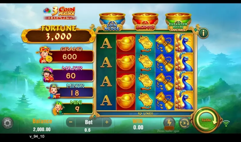 Δοκιμάστε τον διαδικτυακό κουλοχέρη 3 Coin Peacock δωρεάν σε δοκιμαστική λειτουργία, χωρίς να χρειάζεται να κάνετε λήψη ή εγγραφή.