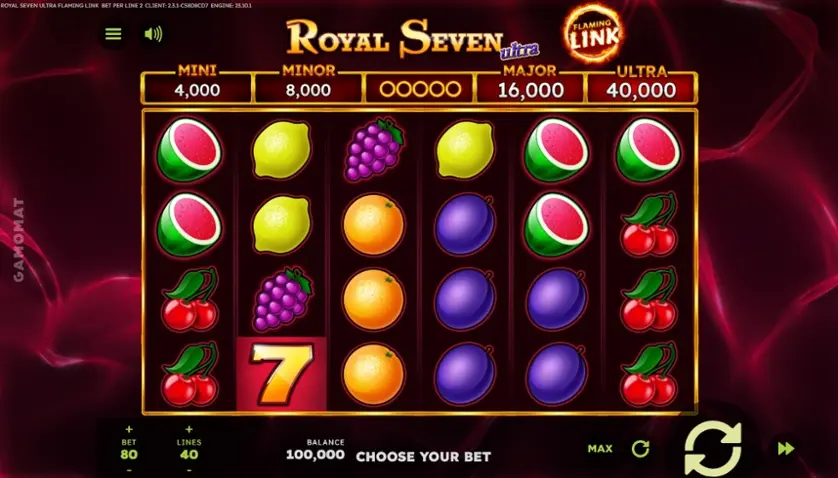 Δοκιμάστε τον διαδικτυακό κουλοχέρη 7 Royal Seven Ultra Flaming Link δωρεάν σε δοκιμαστική λειτουργία, χωρίς να χρειάζεται να κάνετε λήψη ή εγγραφή.