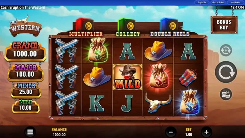 Δοκιμάστε τον διαδικτυακό κουλοχέρη Cash Eruption The Western δωρεάν σε δοκιμαστική λειτουργία, χωρίς να χρειάζεται να κάνετε λήψη ή εγγραφή.