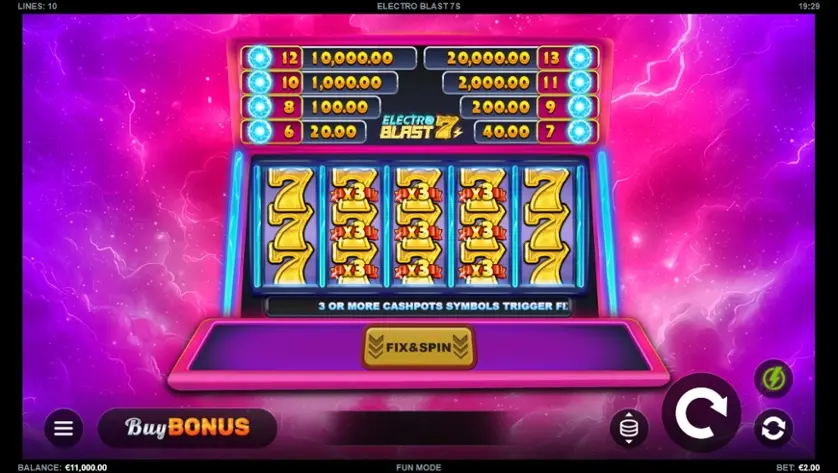 Δοκιμάστε τον διαδικτυακό κουλοχέρη Electro Blast 7s δωρεάν σε δοκιμαστική λειτουργία, χωρίς να χρειάζεται να κάνετε λήψη ή εγγραφή.