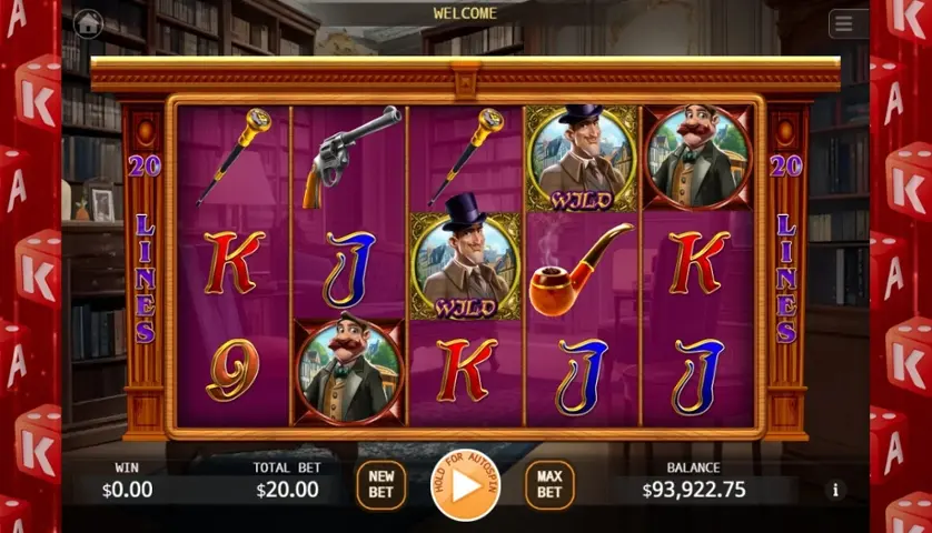 Δοκιμάστε τον διαδικτυακό κουλοχέρη Sherlock Holmes δωρεάν σε δοκιμαστική λειτουργία, χωρίς να χρειάζεται να κάνετε λήψη ή εγγραφή.