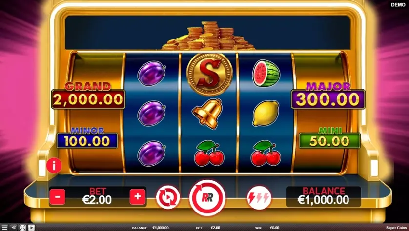 Δοκιμάστε τον διαδικτυακό κουλοχέρη Super Coins δωρεάν σε δοκιμαστική λειτουργία, χωρίς να χρειάζεται να κάνετε λήψη ή εγγραφή.