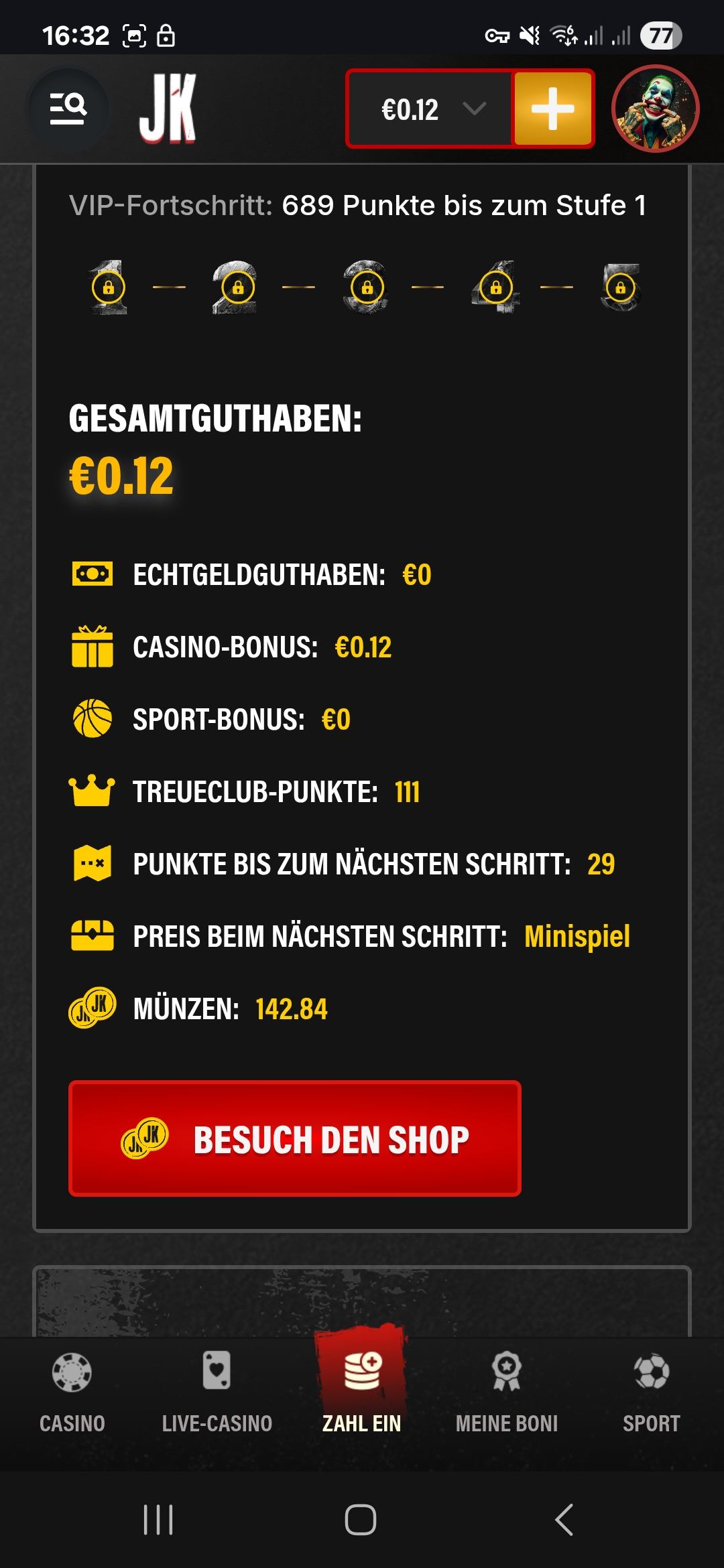 Nein, ich habe den Einzahlungsbetrag nicht vollständig aufgebraucht. Die Gewinne habe ich rein mit dem Einzahlungsbetrag erzielt, nicht mit dem Bonusguthaben.